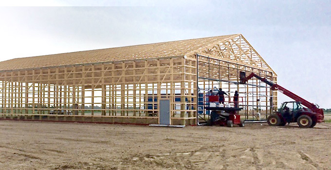 “With a pole/post building, the concrete floor floats, whereas with the stud frame, it’s pinned to the grade beam,” he said, adding stud-frame buildings also provide the option of slab or radiant floor heating.