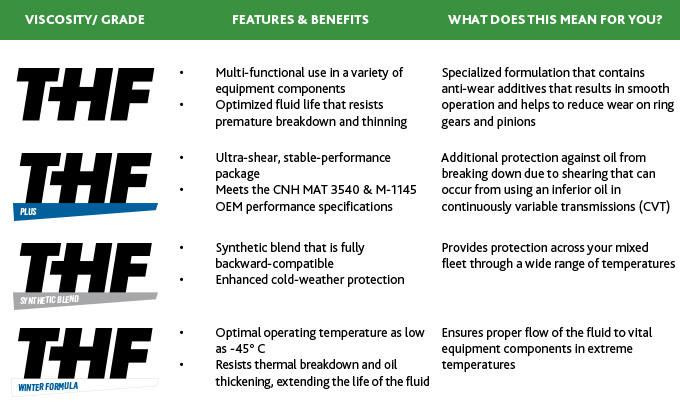 T-HF (Transmission Hydraulic Fluid) products are premium-performing, heavy-duty fluids that provide superior performance and protection for your equipment. They have been tested against the performance standards of industry-leading original equipment manufacturers (OEM) that recommend a high-performing single fluid for a common oil reservoir system.