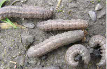 Feeding damage: Young larvae chew holes in leaves; older larvae sever stems at or below surface