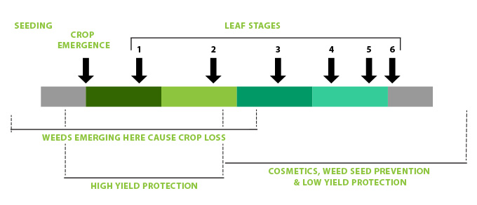 - Control of early germinating or over-wintering weeds reduces the chance of weed seeds going back into your field before harvest.