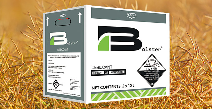 BOLSTER®, a desiccant available at Co-op Agro Centres, delivers a fast and effective dry down for canola, soybeans and pulse crops, including peas and lentils.