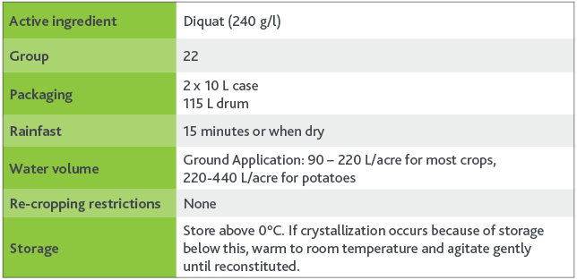 The desiccant will not speed maturity of green crops, but will facilitate a faster, easier harvest.